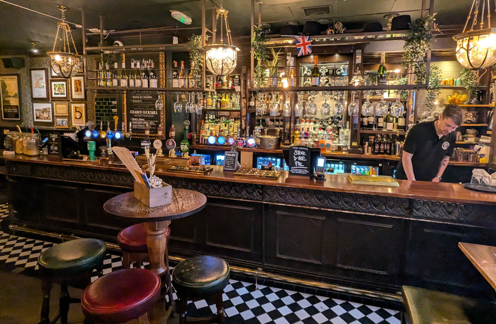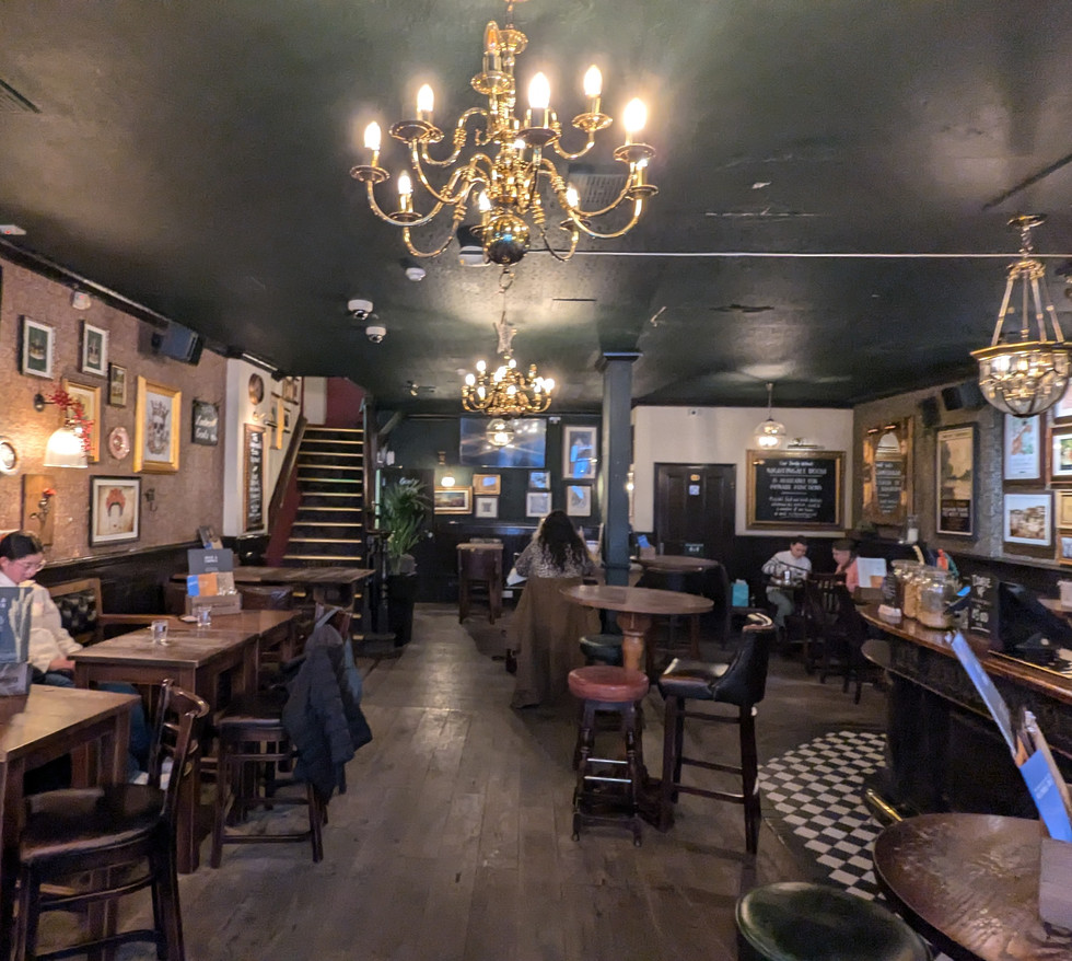 London, Mayfair. This building is over 400 years old and was once a hunting lodge for Queen Anne. It was originally called "The Oliver Cromwell" and was used as the living quarters for his bodyguards. The cellars were used as a gaol for felons awaiting execution at nearby Tyburn. Licensed in 1743, the present name was adopted by 1763 and the pub was rebuilt in 1889. The sign above the entrance features a Tudor rose over a royal crown which symbolizes the union of the white rose of York and the red rose of Lancaster which occurred when Henry Tudor married Elizabeth of York, ending the war of the Roses. Inside is a large single room next to a long dark wood bar and an upstairs dining room. A Greene King pub, their IPA was my beer of choice as I started my days crawl in Mayfair.