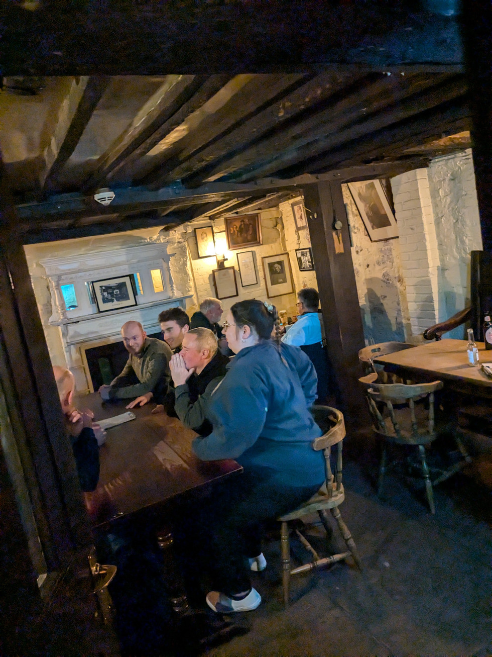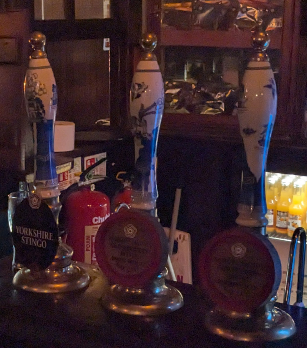 London, Fleet Street. Established in 1538 and rebuilt after the Great Fire of London in 1666. The pubs vaulted cellars are thought to date back to a 13th century Carmelite monastery. Literary figures Mark Twain, Charles Dickens (it is alluded to in his "A Tale of Two Cities"), Alfred Tennyson and Sir Conan Doyle were known to be regulars. According to the Betty Crocker cookbook Dickens dined on Welsh Rarebit here. Agatha Christie wrote that her fictional character Hercules Poirot dined here in her 1924 story "The Million Dollar Bond Robbery". In 1905 Jumbo Junior, the smallest elephant to be imported into Britain was invited to visit the pub. Outside is a sign listed all the monarchs from Charles I to Charles III that have ruled while the pub has been here. It has a unique old interior with multiple levels, stone staircases, and ancient wood, with many rooms and bars. It is a Samuel Smith's pub and I enjoyed a Yorkshire Stingo, a rare cask aged beer with notes of raisin, treacle coffee, and Christmas pudding and is 8-9 abv! This is definitely a pub not to be missed!